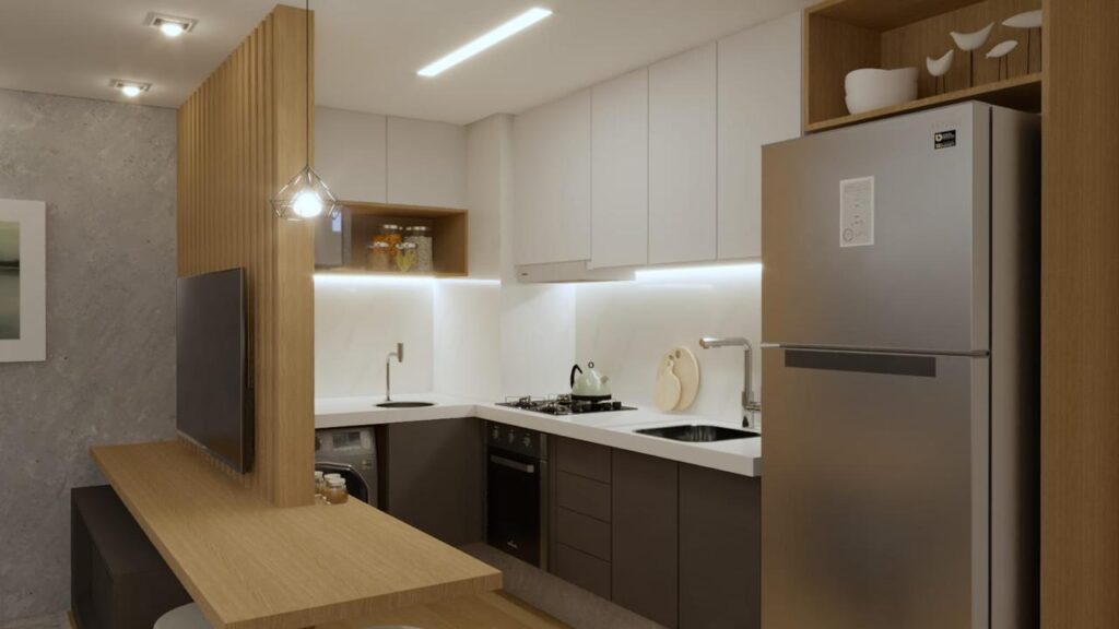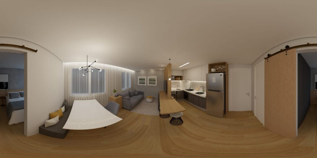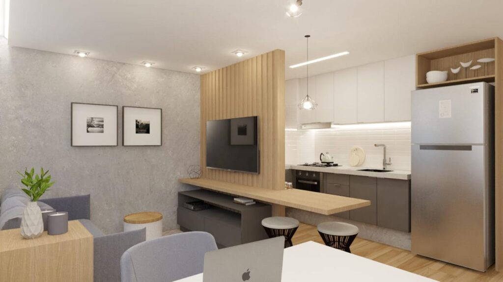 Este apartamento na Mooca foi projetado para um homem solteiro apaixonado por tecnologia, praticidade e design contemporâneo. A proposta integra sala, cozinha e área de trabalho em um espaço fluido, funcional e inteligente, pensado para acompanhar sua rotina dinâmica.