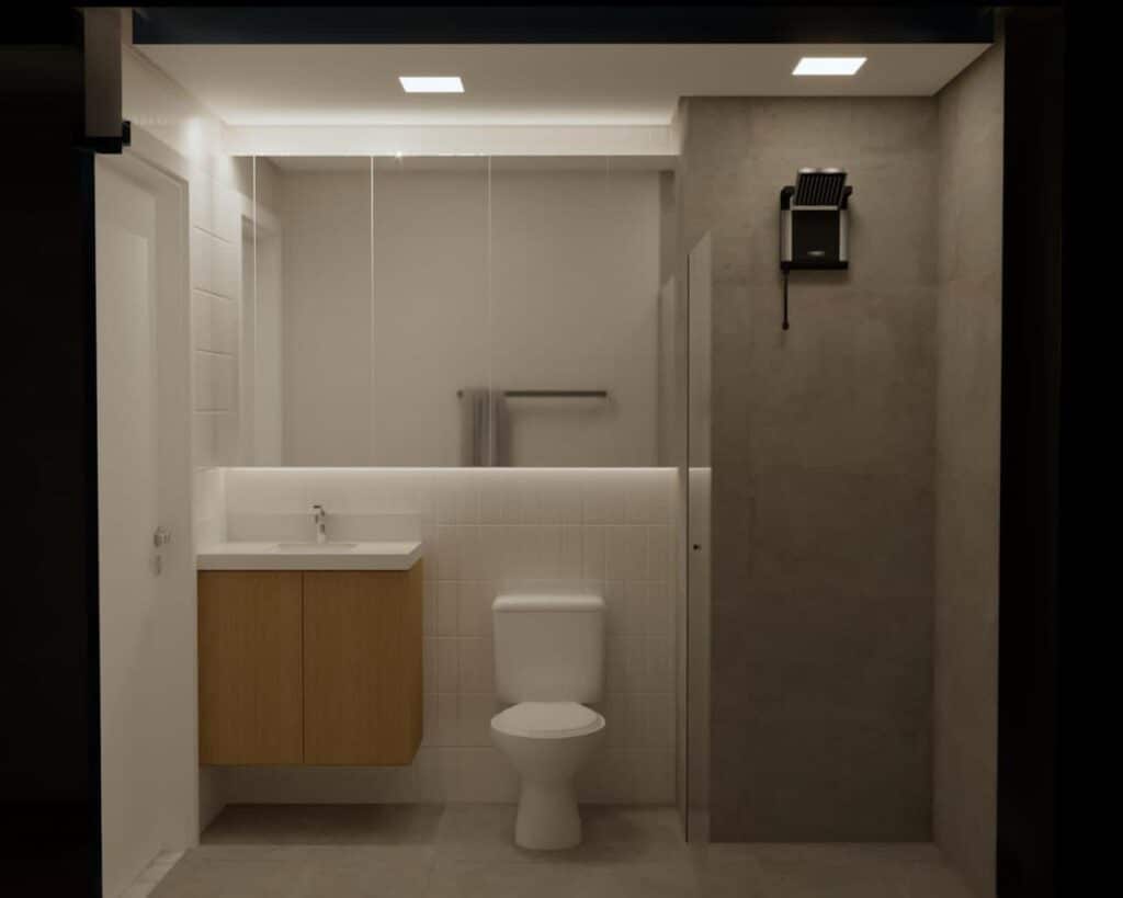 A marcenaria sob medida, o painel ripado que organiza a TV e a bancada estendida criam uma atmosfera moderna e acolhedora. A paleta neutra, combinada a texturas cimentícias e detalhes em madeira, reforça a elegância masculina do projeto. Cada escolha valoriza o uso eficiente dos espaços, desde a cozinha minimalista até o living pensado para receber amigos com conforto e estilo.